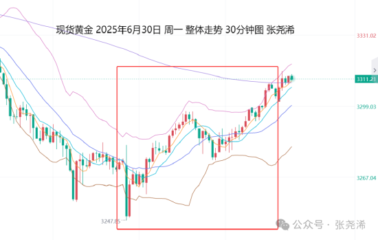 7月1日:昨日周一(6月30日):国际黄金如期止跌触及周图之前的上升趋势通道支撑,止跌反弹回升,并重回60日均线上方,多头力量加强,看涨前景加强,那么60日均线以及昨日开盘价一线则再度转为支撑进行看涨反弹,等待再度上探3400美元或其上方。